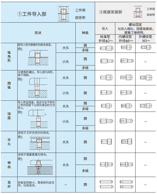 ● 为了能反复定位,比较重视定位销的形状、硬度。