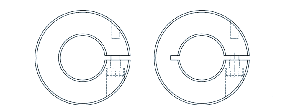 观察下图,左侧结构由两个零件拼接而成,但实际上,这样的拼接体积并不大,甚至不如直接采用一个零件进行加工。分割成两个零件不仅增加了加工的复杂性,还可能影响到尺寸的精确控制,同时浪费了安装时间。相比之下,右侧的一体化零件设计则更为简洁,减少了加工孔位,使得尺寸控制更为容易。