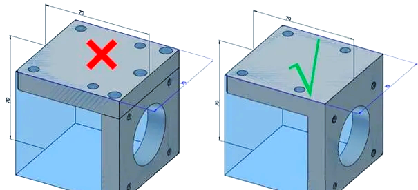 在钣金加工过程中,如果直孔或螺纹孔与弯折处的距离过近,且先进行打孔后弯板操作,那么很可能会导致孔洞的损坏。
