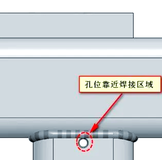 再以一个具体的例子来说明,如下图中展示的是一个焊接方通架子。在设计中,打孔的位置选择得过于靠近焊接区域,这带来了不少挑战。由于焊接附近的硬度显著提高,加工难度也随之增大,很容易导致钻头或丝锥的断裂。因此,为确保加工的顺利进行,设计时应该将打孔位置远离焊接区域附近,这样才更为合理。