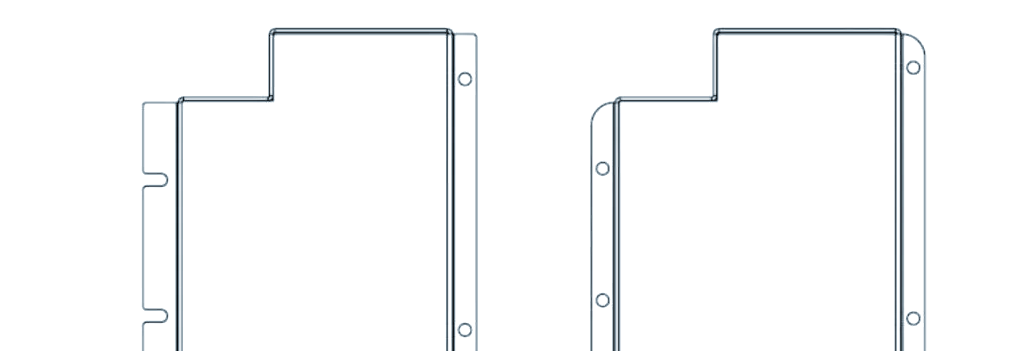 其中,一个经常出现的问题是圆角设计的不合理性。例如,图一(左)所示的零件就存在圆角设计不当的情况。有些新手工程师可能会因为追求美观等原因,将台阶过渡处设计成圆角。然而,这样的设计在加工时会导致问题,如图一(右)所示,加工刀具的切削刃长度不足,容易发生让刀现象。因此,更合理的做法是直接将过渡处设计成直角,如图二所示。