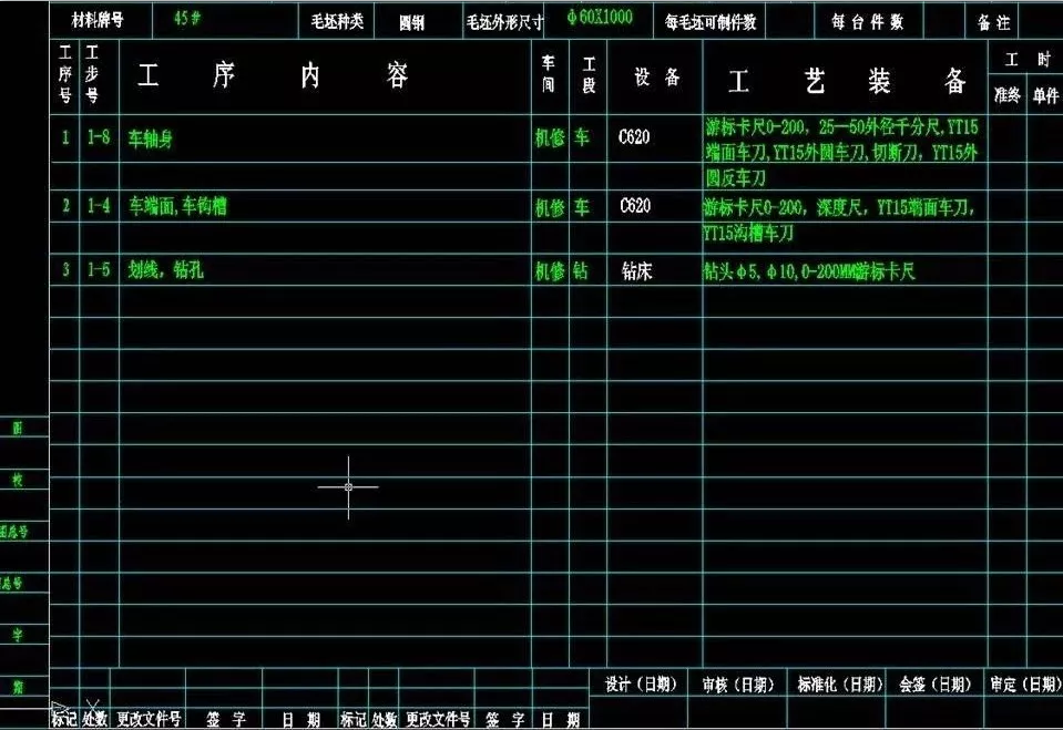 加工工艺卡: