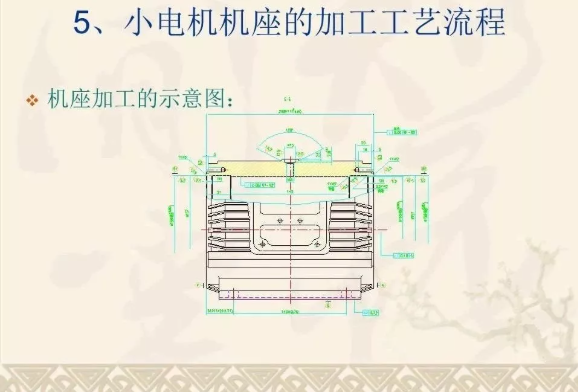 下面以电机座为例,看看实际加工中,一般都是怎么安排工艺工序的: